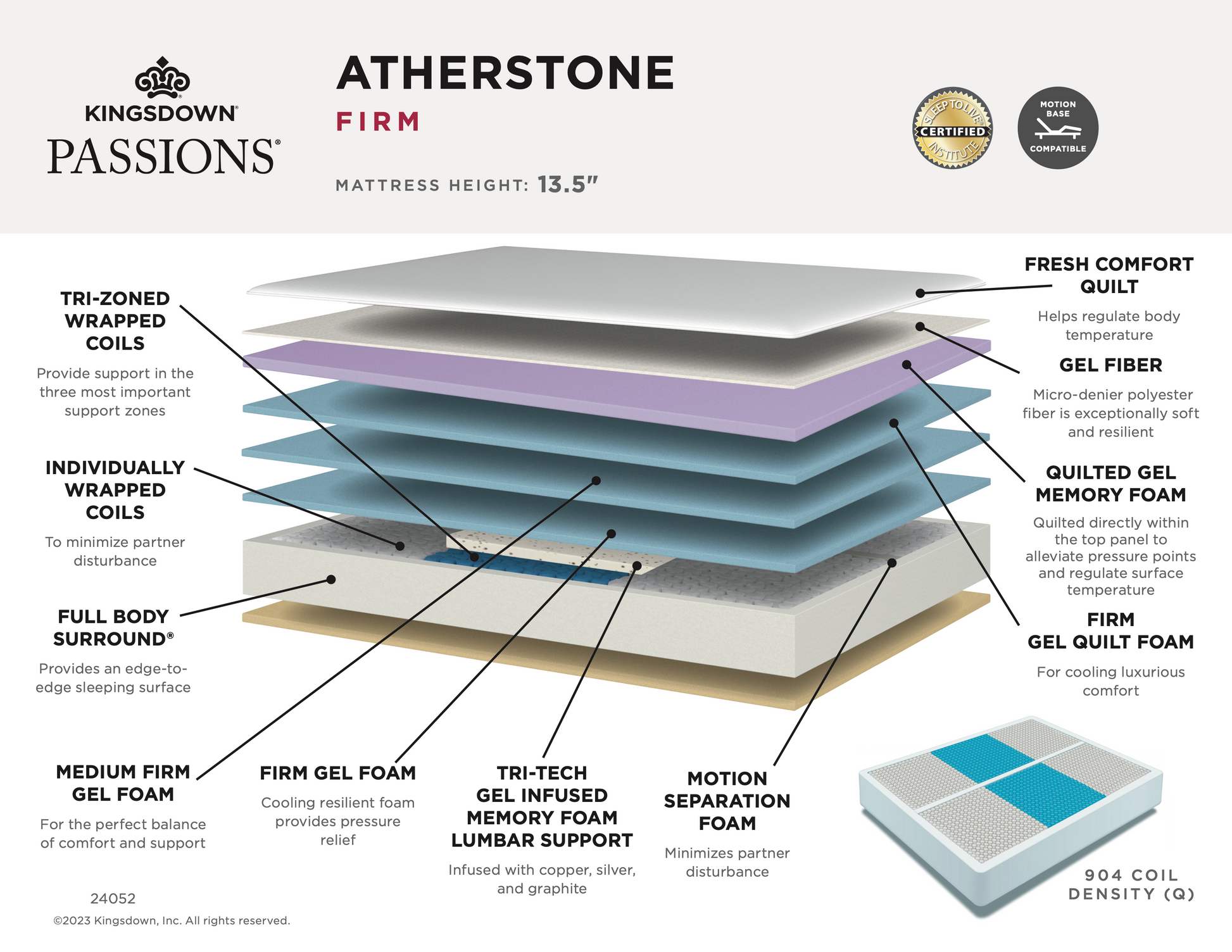 The Kingsdown Passions collection provides an ideal combination of high-performance comfort and premium innerspring support. From its quilted surface to the deep-down comfort that supports the body in every sleep position, the Kingsdown Passions Atherstone 15” Firm Hybrid Euro Pillow Top delivers the luxury sleep experience you crave atop the supportive foundation you need.